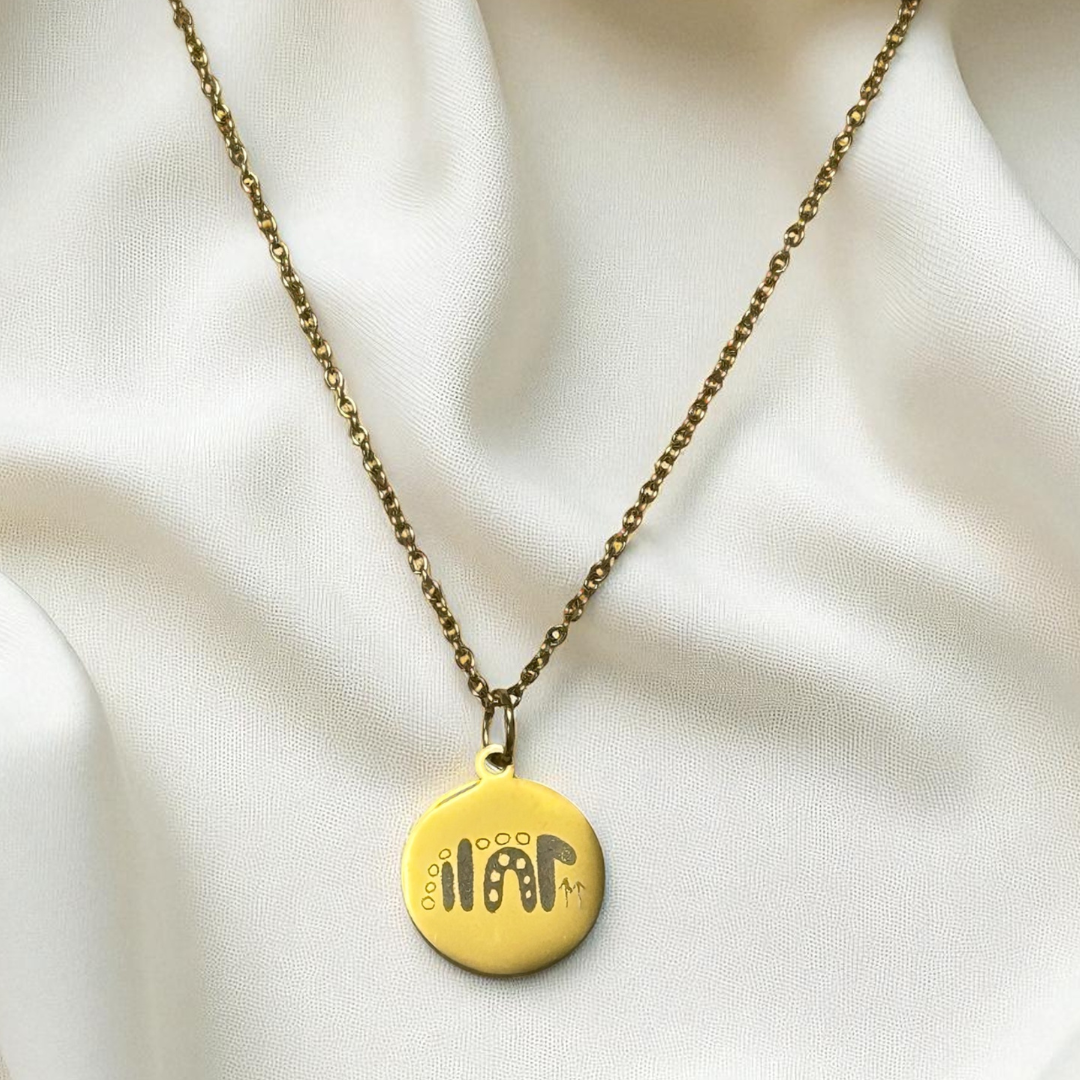 18K Gold: 15mm stainless steel pendant plated in 18k hold. 45CM stainless steel chain, plated in 18k Gold. High shine, mirror polish finish.