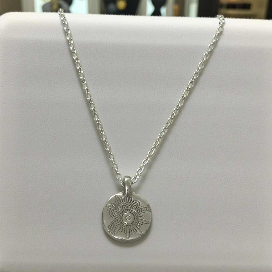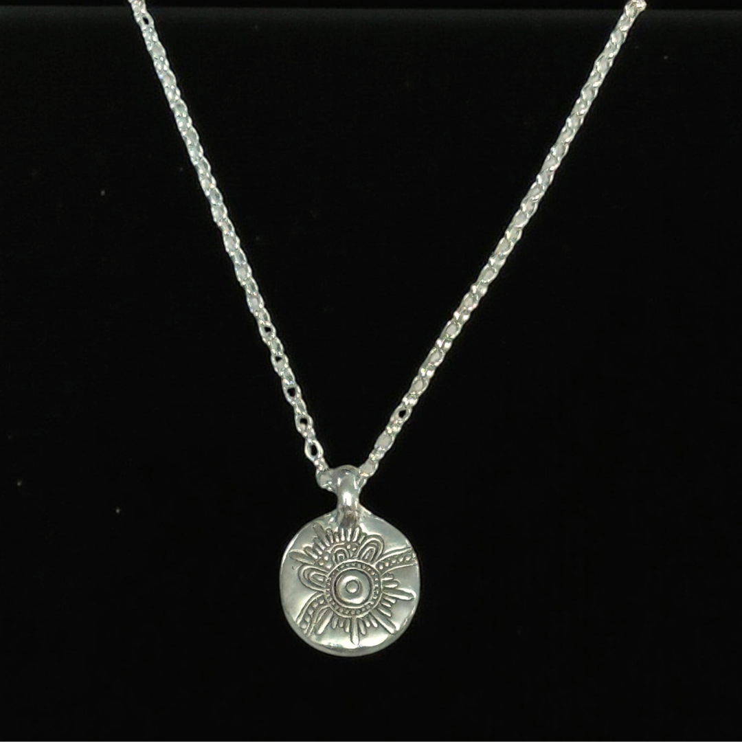 The pendant, made from solid sterling silver, measures 15mm and features a distinctive outward engraving – a striking contrast to the inward engraves of my other designs. Its thickness and weight give it a beautifully substantial feel, symbolizing strength and resilience.