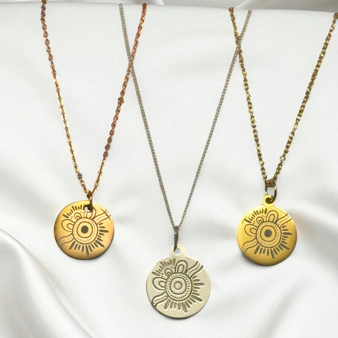 .925 Sterling Silver: Solid .925 sterling silver pendant and chain. You have the option of a 45CM or 50CM chain with a 10mm or 16mm pendant. Your pendant will be textured as the design is engraved into the silver and will be polished.