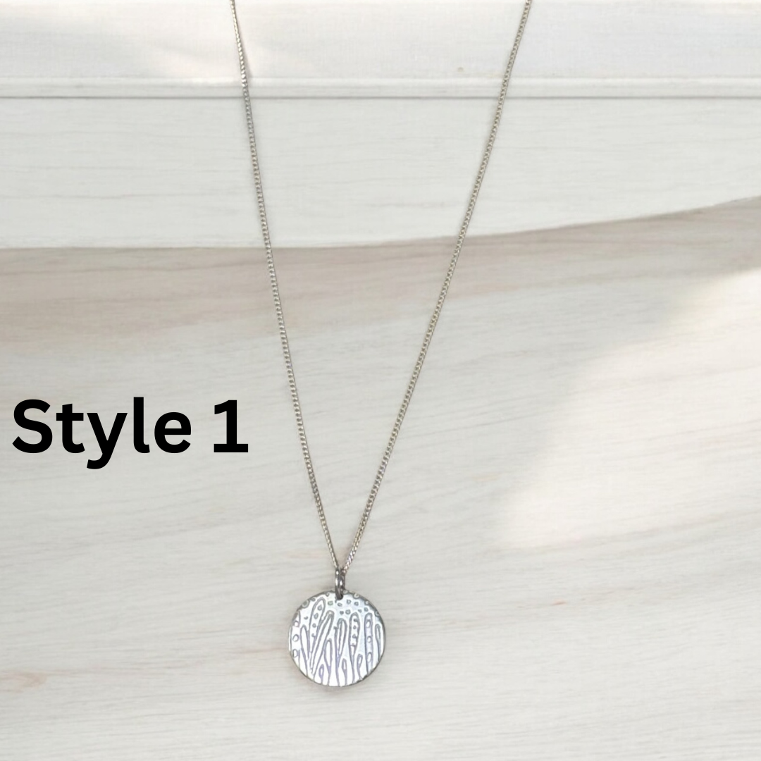 .925 Sterling Silver: Solid 16mm .925 sterling silver pendant and 50CM chain. Your pendant will be textured as the design is engraved into the silver and will be polished.