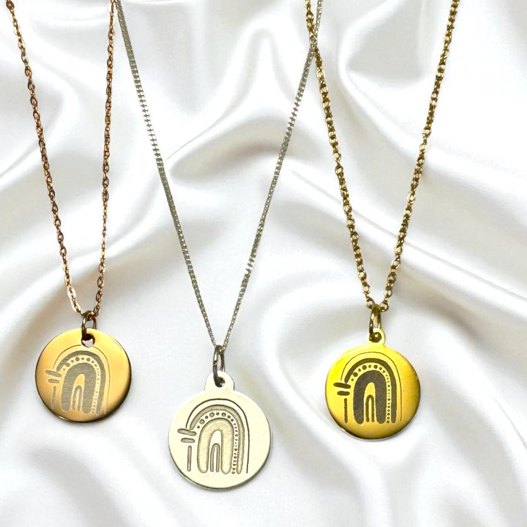 .925 Sterling Silver: Solid .925 sterling silver pendant and chain. You have the option of a 45CM or 50CM chain with a 10mm or 16mm pendant. Your pendant will be textured as the design is engraved into the silver and will be polished.