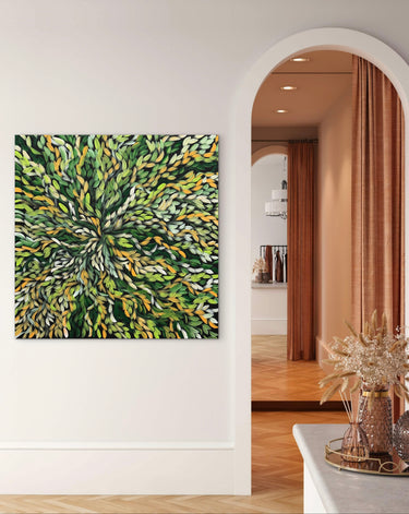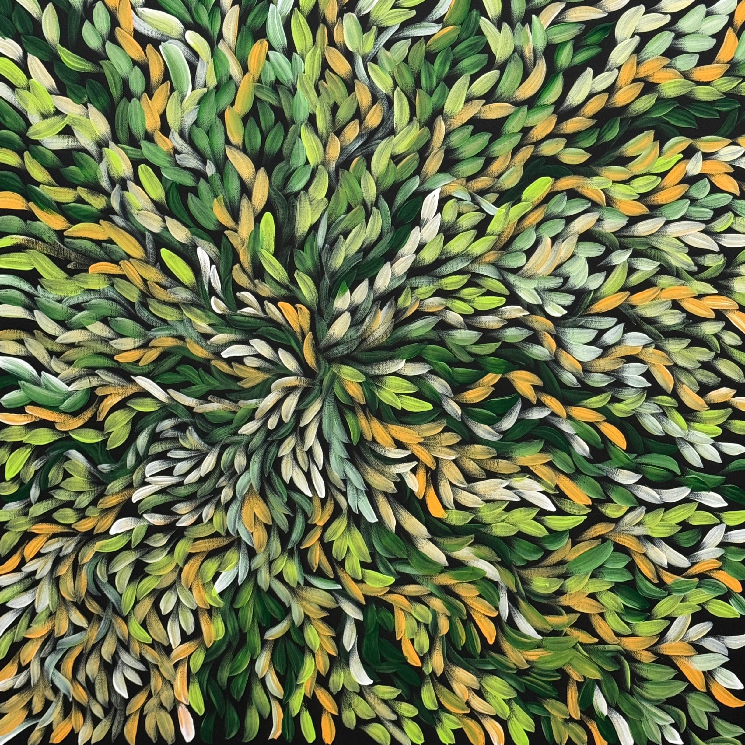 Gathering Bush Medicine measures 76 x 76cm and is acrylic on canvas. Ready To Hang.